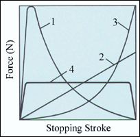 To stop the gun we must apply a braking force to the butt and we can choose to brake either quickly or slowly depending on what we need to do. The rate at which we stop the gun (deceleration) depends on the force applied to the butt - faster braking requires a higher force and is analogous to braking a car normally or very hard, as in the case of an emergency stop.