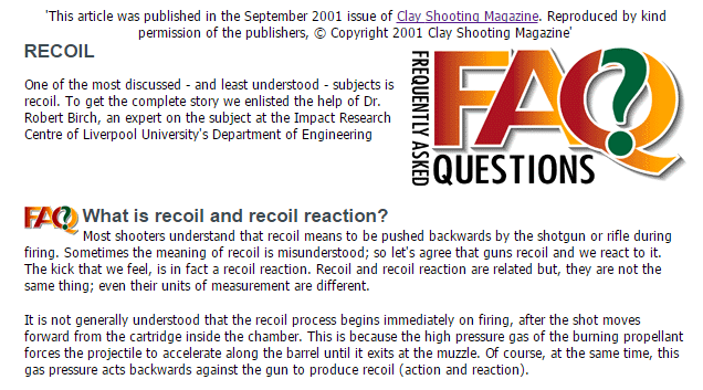 One of the most discussed - and least understood - subjects is recoil. To get the complete story we enlisted the help of Dr. Robert Birch, an expert on the subject at the Impact Research Centre of Liverpool University's Department of Engineering